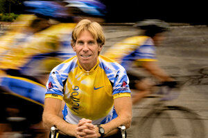 What I found floored me. Right in the middle of the PMC home page was a photograph of me in this year’s jersey, the image of intensity: down in the drops and leading a paceline (image).